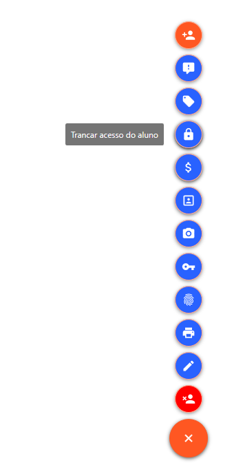 Nesta versão é possível trancar o acesso do aluno. No perfil do aluno clique no menu principal do lado direito e então clique no botão Trancar acesso do aluno com o ícone de cadeado. Depois é possível acessar o relatório com todos os alunos que estão trancados, basta ir no menu lateral esquerdo em Alunos trancados