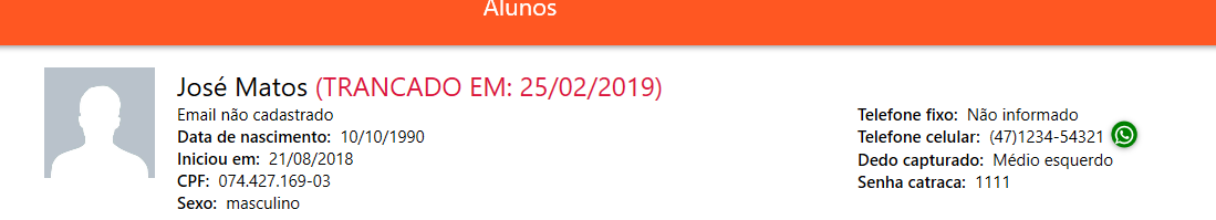 Agora é possível abrir uma conversa no WhatsApp Web com o aluno. No perfil dos alunos com celular cadastrado, aparecerá um icone do WhatsApp. Clicando nele você confirma o número e então a conversa será aberta. Nos relatórios: alunos ativos, inativos, ausentes, etc. esta funcionalidade também está disponível!
