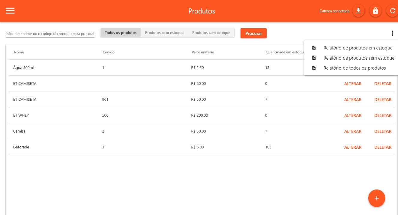 Em relação a produtos, adicionamos a opção para buscar pelo código e também foi acrescentado filtros para buscá-los. Do lado direito agora também está disponível a impressão de relatórios.